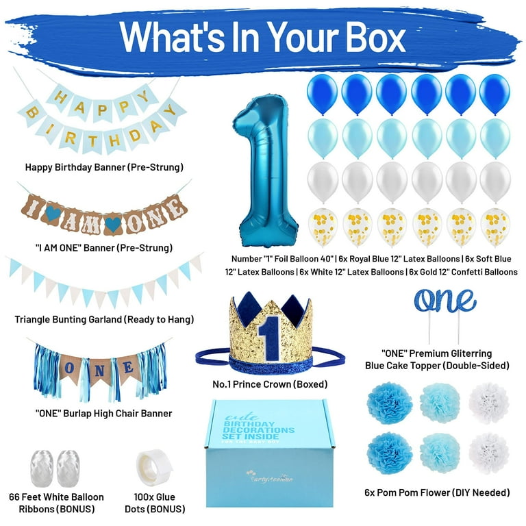Partyhooman Multi Color First Birthday Latex Party Decoration Kits With Crown 45 Pieces Walmart Com
